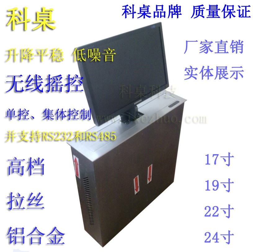 別致產品特性:該升降系統可以滿足顯示器不用拆卸及避免橫七豎八布線的需要,充分利用桌面以下的空間,把主機和顯示器同時藏于桌底下,需要時可以在需要使用時觸發控制器,倉蓋自動打開、顯示器升至桌面。顯示屏升上來后,可隨時根據視角向后調整顯示屏一定的角度便于觀看;不用時又可以收回桌底,并自動恢復顯示屏的初設角度,滿足于不同與會者的要求。可以通過集中控制器集體控制,也可以單屏控制。